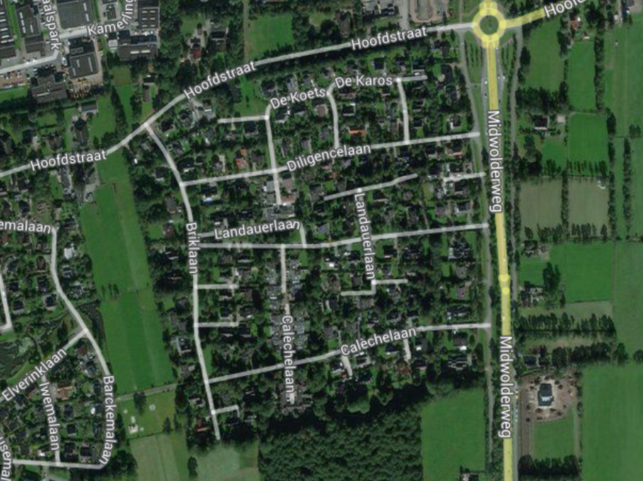De buurt was oorspronkelijk agrarisch gebied en is indertijd door de gemeente Leek bestemd gemaakt voor nieuwbouw. De buurt van de vereniging wordt in principe omsloten door de Hoofdstraat van Midwolde in het Noorden, de Midwolderweg tot de Oude Zuiderweg in het Oosten, het Groevebos aan de Calèchelaan in het Zuiden en in het Westen de tuinen van de Briklaan.